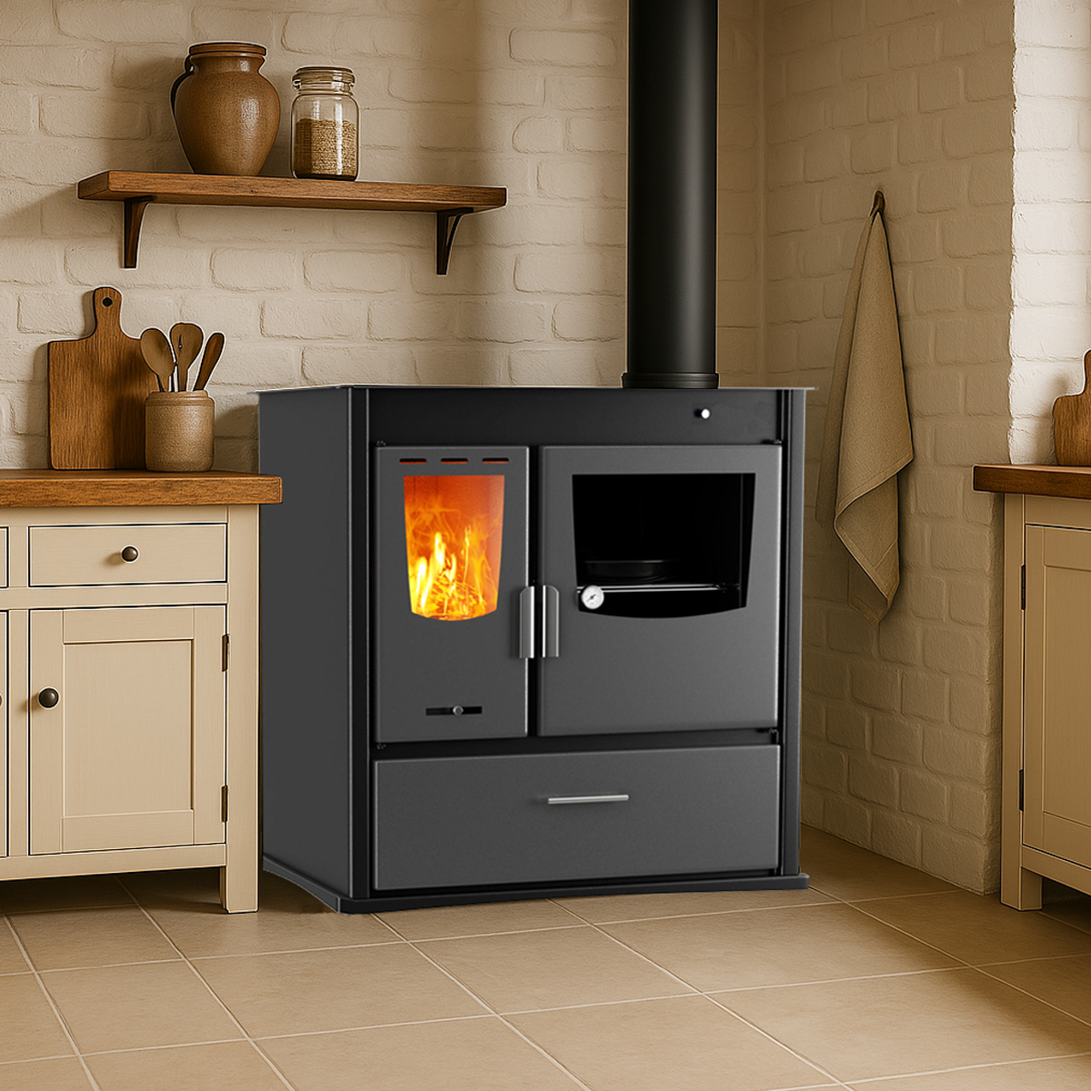 Construção robusta, design intemporal e excelente rendimento térmico tornam este modelo uma solução prática e elegante para ambientes rústicos ou contemporâneos.