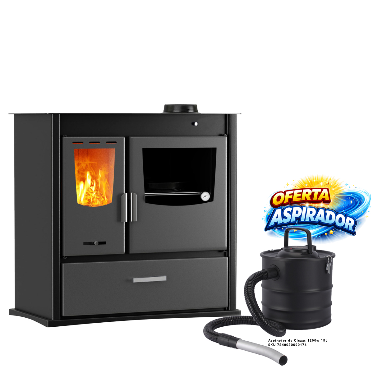 O Fogão a Lenha Artom Pine 12kW com Forno é a solução ideal para quem procura um sistema de aquecimento eficiente e multifuncional, com a vantagem de um forno integrado e um design prático para o uso diário.